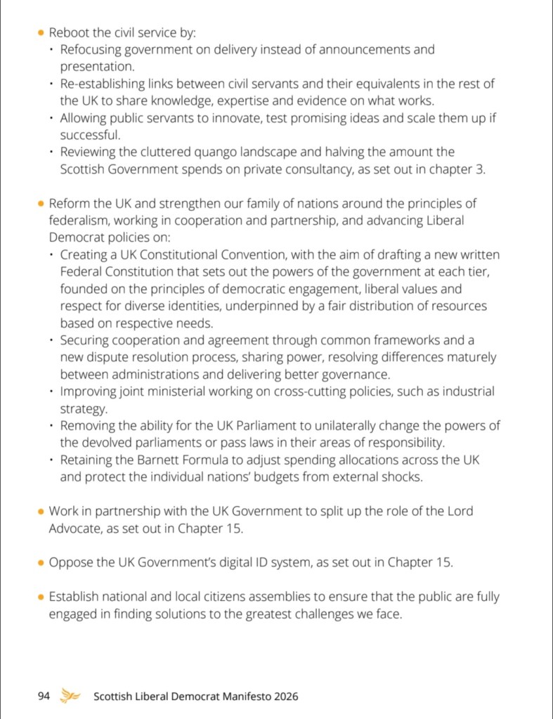 The Scottish Lib Dems have also pledged to protect drovlution by removing the ability of the UK Parliament to unilaterally change the powers of devolved parliaments.